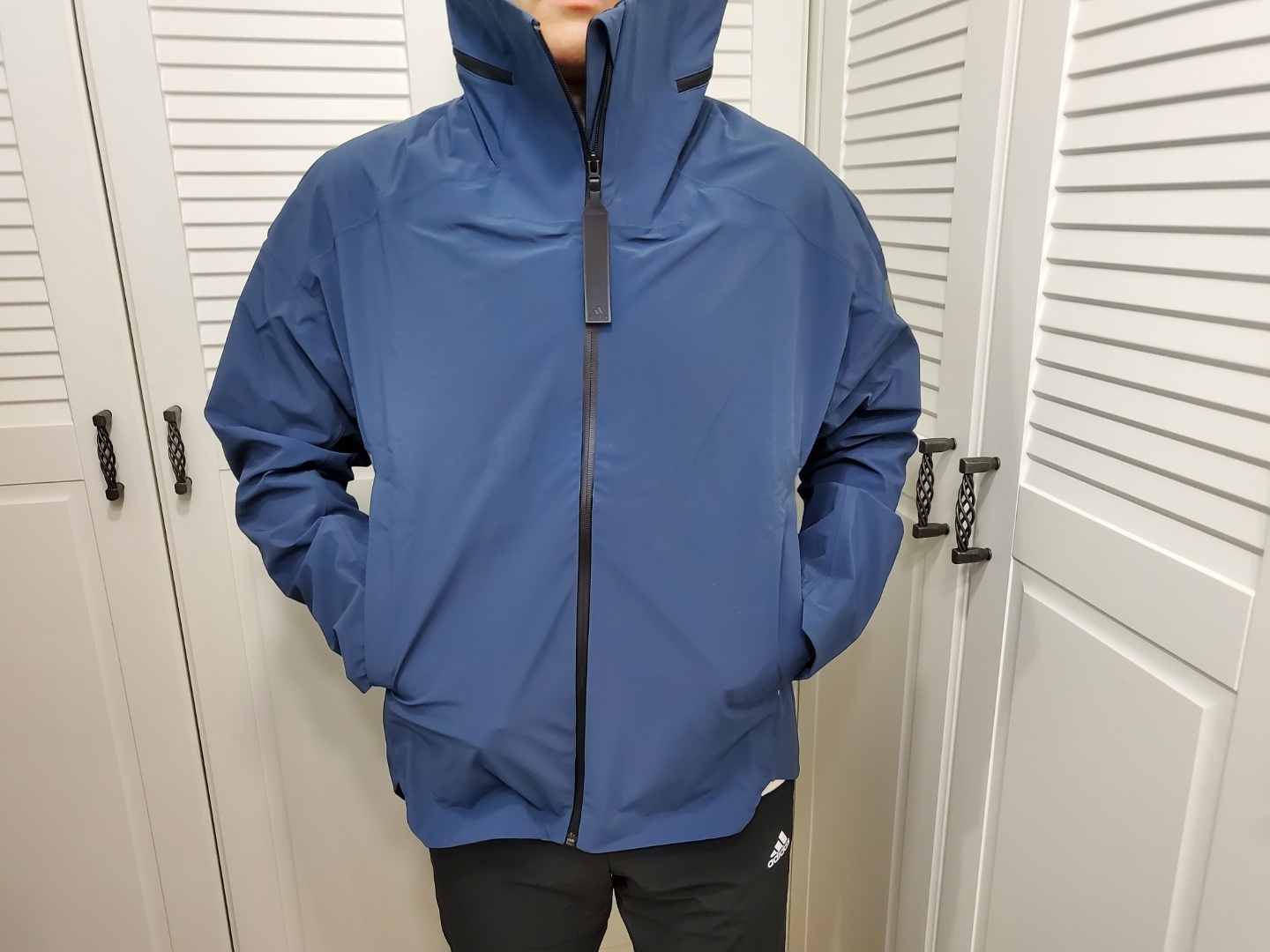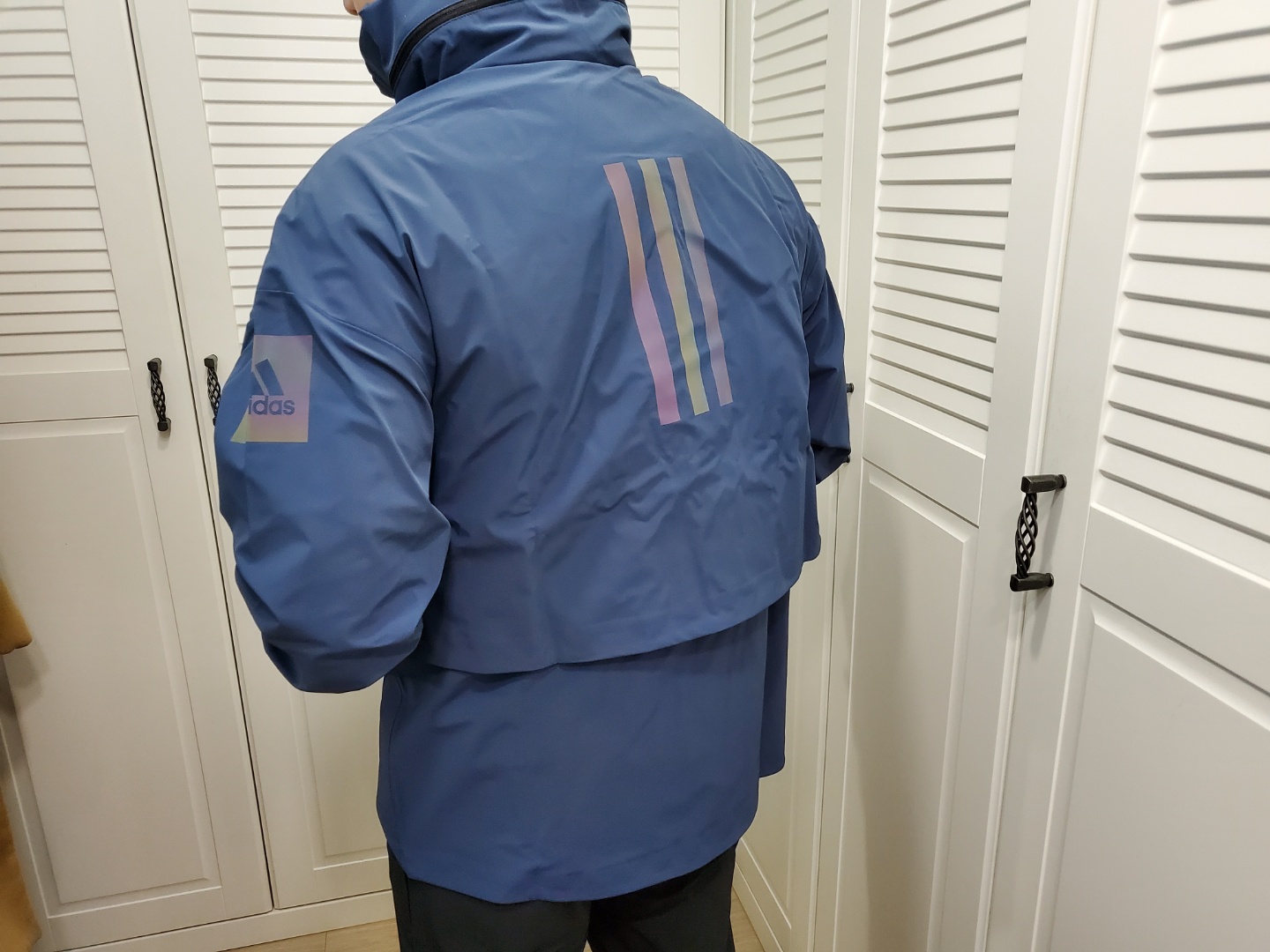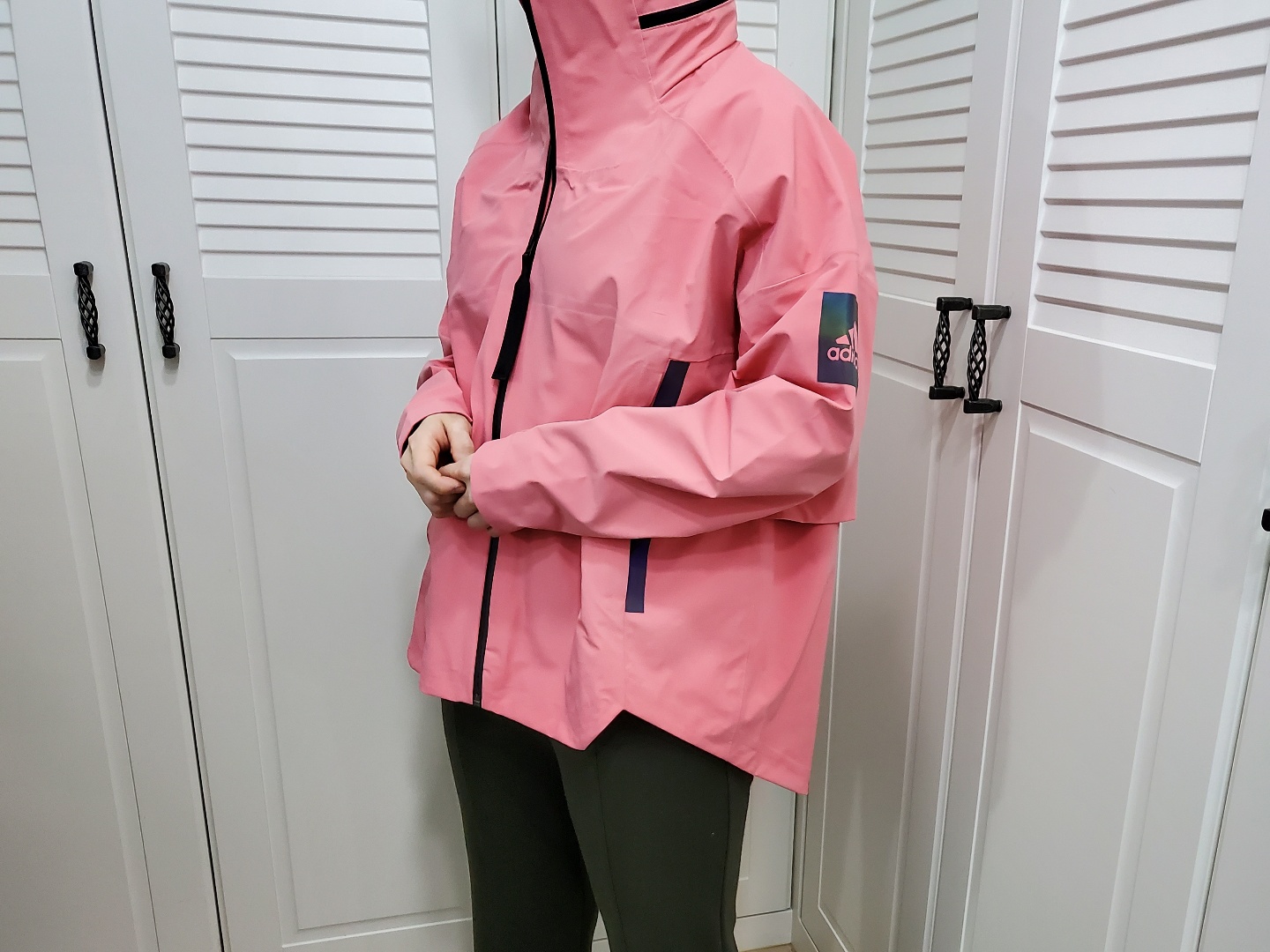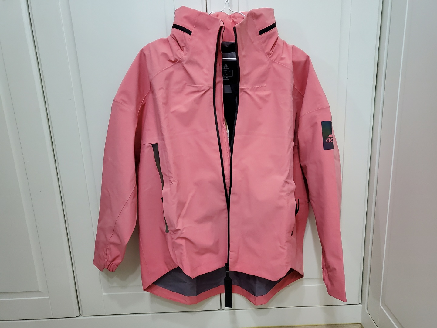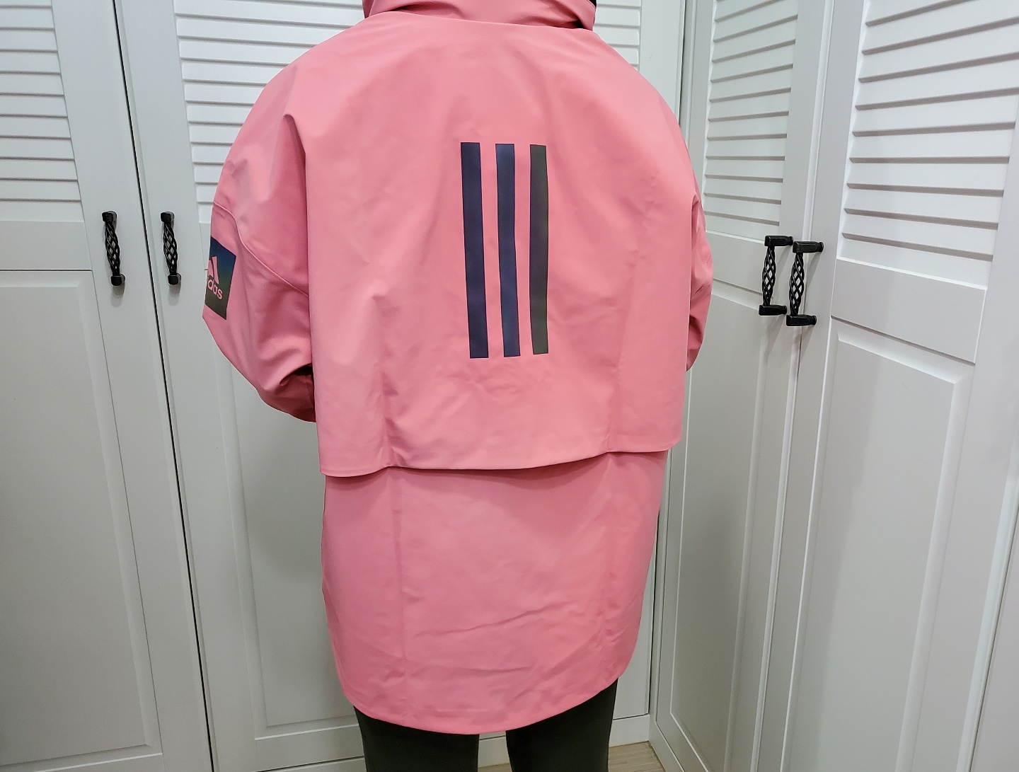 캠핑 용품에도 쉘터가 있어요. 봄, 가을, 겨울 용으로 많이 쓰는 텐트인데 이번에 쉘터도 샀거든요. 이름만 해도 캠핑 때 입어야 할 것만 같은 재킷이에요. 말 그대로 아웃도어용 재킷으로 아디다스 매장에서 직접 구매를 했는데, 매장에 들어가면 핑크색이 제일 먼저 눈에 띄어요. 인터넷에는 RED 옵션으로 나와있네요. 색상은 톤 다운된 핑크예요. 로즈 핑크라고 하나요? 핫핑크 계열이 아니고 톤 다운된 핑크고 소재와 어우러져서 고급스럽게 보여요. 저는 얼굴이 약간 하얀 편인데요. 색상이 부담스럽지 않을까 옷을 코디하는 게 부담스럽진 않을까 하고 블랙 컬러와 정말 고민을 많이 했는데, 남편도 직원분도 핑크 컬러를 강력 추천하시네요. 지금 입고 다니니 핑크 컬러 하기를 정말 잘 선택한 거 같아요. 사자마자 입고 출퇴근도 하고 운동도 하러 다니고 있는데 전혀 튀거나 부담스럽지 않은 컬러예요. 그리고 아마 블랙을 샀더라면 집에 가서 계속 이색상이 아른아른 거리지 않았을까 하는 생각이 들었어요.