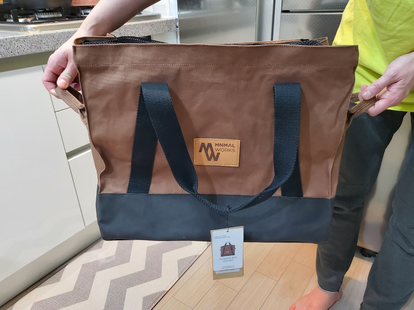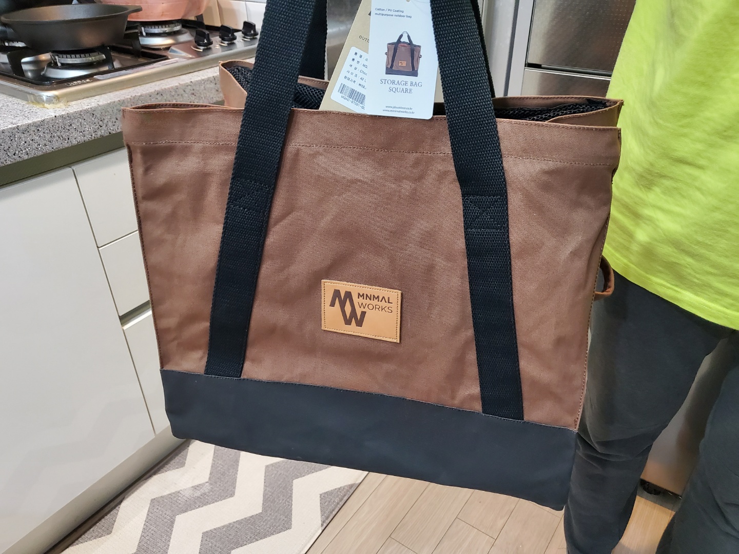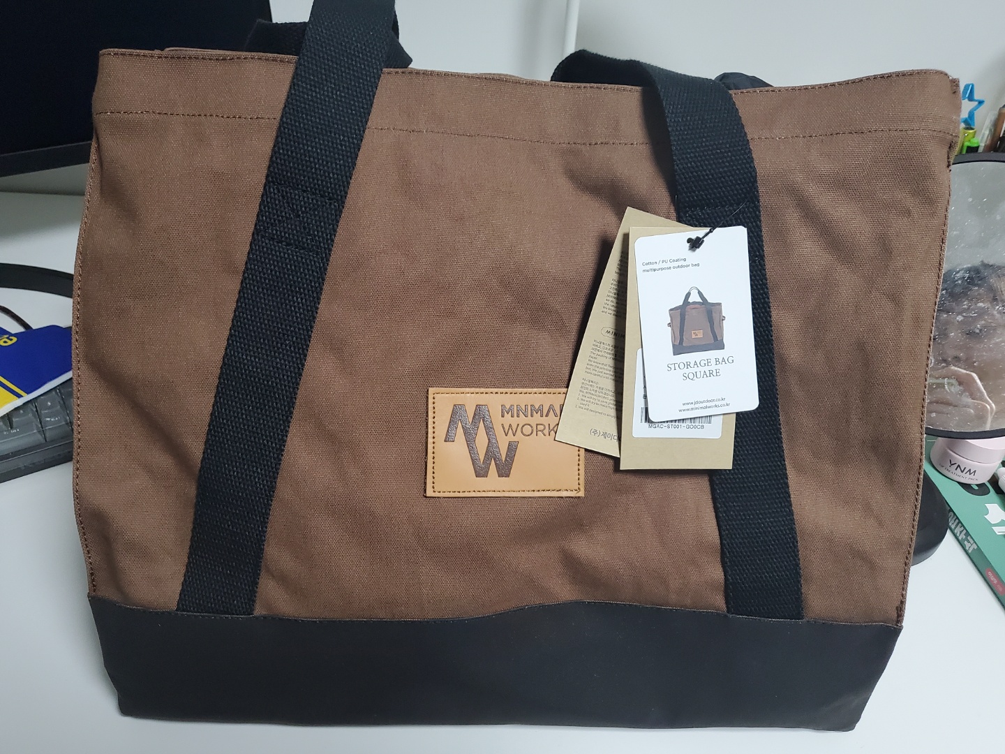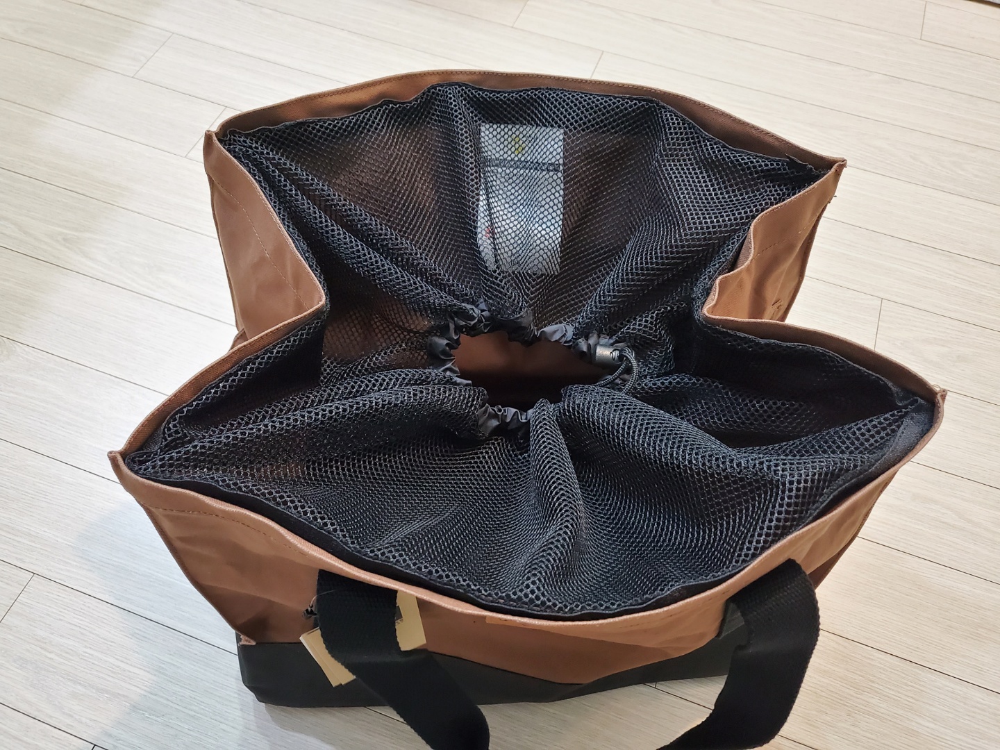 제일 마음에 들었던 점은 상단 메쉬와 코드락 끝이 있어서 물품을 꽉 채워서 넣고 메쉬 창을 조여서 묶으면 물품들이 쏟아질 염려가 없어서 매우 편해요. 물론 이 메쉬 창도 지퍼로 탈부착이 가능해서 필요 없을 땐 때 버리면 되는데 저는 땔일 없이 계속 연결해서 사용하려고요. 이게 가방 뚜껑이 있는 것보다 훨씬 좋은 것 같아요. 미니멀웍스의 디자인이 사용자를 얼마나 배려했는지 느껴지네요. 그 다음으로 좋았던 점은 양 옆에 손잡이가 있다는 거예요. 여성분들은 손 힘이나 어깨 힘이 약해서 가방 들기 힘든데 가방 무게가 많이 나갈 땐 양옆에 손잡이를 사용해서 들면 정말 편할 거예요. 일반 가방에 양옆에 손잡이 있는 건 처음 봤거든요. 이게 너무 편하네요. 예쁜 브라운 컬러에 바닥은 오염될걸 우려해서 블랙 컬러 집어넣은 디자인부 분도 세심해 보입니다!
