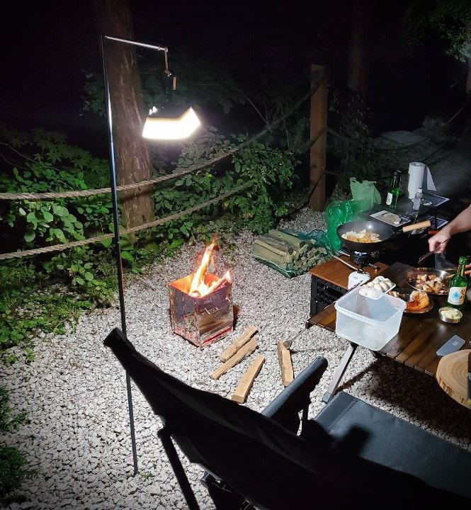 옵션으로 확산 후드를 구매할 수 있는데요. 이게 품절이 잘 되더라고요. 확산 후드를 사용하면 조명의 센 불빛을 은은하게 확산시켜줘서 테이블 조명이나 무드 램프로 사용이 가능한데요. 낮은 위치에 있으면 조명이 자꾸 마주쳐서 불편한데 이걸 사용하면 눈뽕 날일은 없습니다. 보통 끼워서 사용을 하는데 실내에서 오롯이 전등 기능으로만 사용하실 거라면 안 끼우시는 게 좋아요. 안 끼우시고 적당히 밝은 불빛을 사용하시고요, 야외에서 테이블에 식사하시거나 불멍 할 때는 조명 위치가 낮아지고, 벌레가 모일 수도 있으니 확산 후드를 꼭 사용하시는 게 좋습니다. 옵션 추가니 잊지 마시고 같이 구매하시는 게 좋아요.