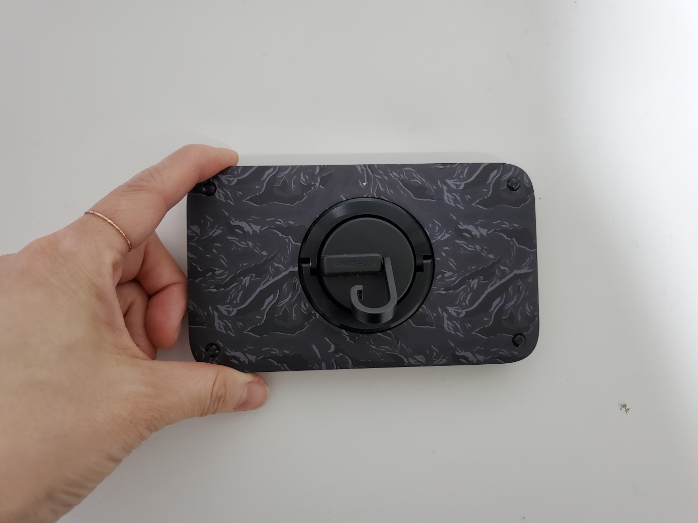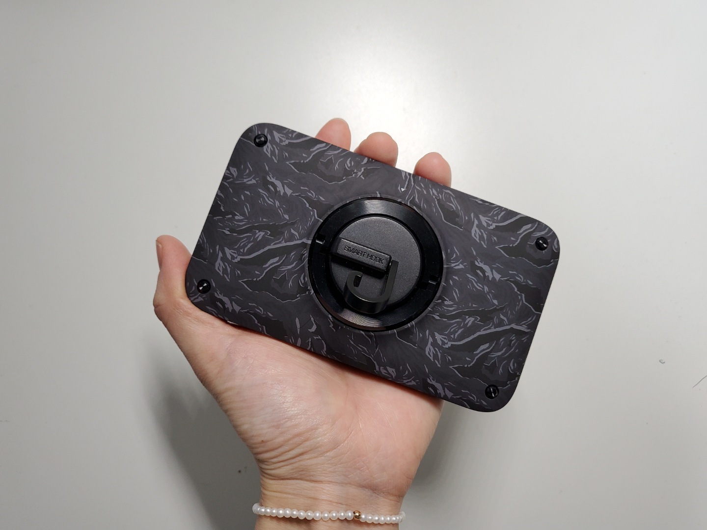 여자 손으로 한 손에 딱 들어오는 크기와 그립감이 좋습니다. 기본 구성품인 자석 고리가 포함되어있는데요. 본체와 자력으로 결합되어 있어서 탈부착이 가능하고 여자 힘으로 힘주어 때어내야 떨어질 정도의 자력입니다. 텐트 타프 등 어디에서 걸 수 있게 탈부착이 가능한 점이 편했습니다. 삼각대 소켓으로 핫슈나 삼각대 연결에서 사용도 가능합니다.