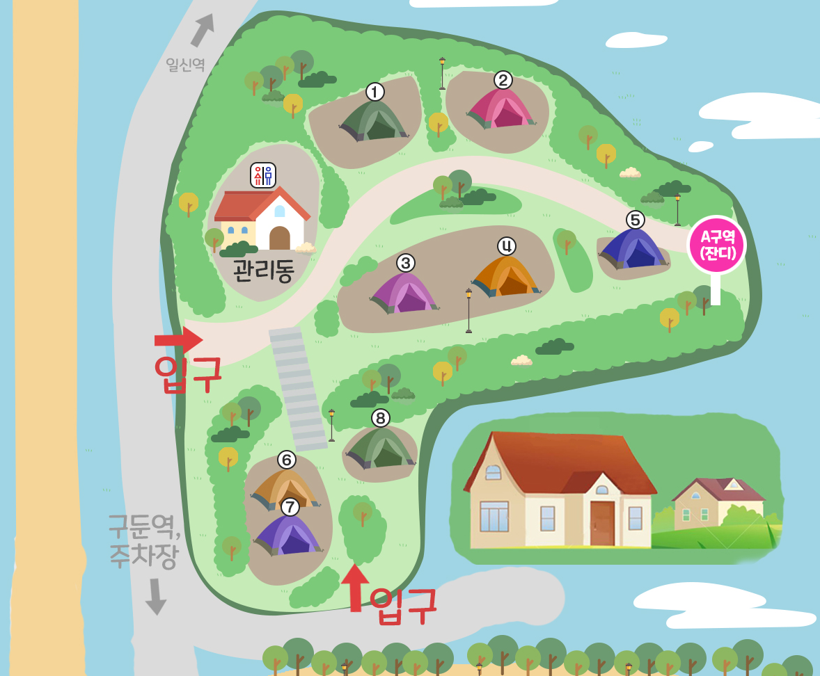 이날도 일박이일로 짧은 캠핑을 하고 온 곳이었어요. 사실 이곳을 결정할 때 남편의 반대가 심했었어요. 소규모 캠핑 장인건 좋은데 너무 정원 같지 않느냐 주변에 경관이 볼 게 없지 않으냐 하는 의견으로 예약을 할지 말지 계속 투닥투닥거렸었죠.