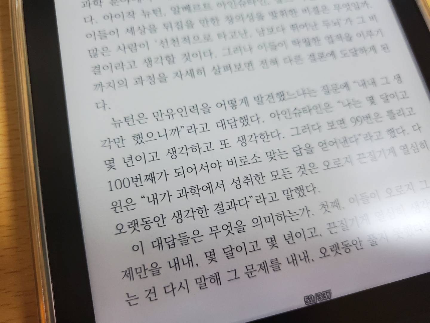 그래서 제가 썼던 크레마 그랑데와 먼저 비교를 했습니다. 사이즈는 정말 작아요 그랑데는 6.8인치라 이북리더기 치고는 크기가 커서 보기에도 편하고 가독성도 참 좋았는데 이만한 사이즈의 이북 리더기를 찾자니 가격대가 너무 높아서 엄두가 안 나더라고요. 가격은 25만 원 까지는 허용이 되는데 그 이상은 가지고 다니기가 겁나더라고요. 다시 크레마 그랑데를 사자니 3년간 다시 사용했던걸 다시 사기가 꺼려졌어요. 메인보드가 한번 나간 상태라 또 똑같은 상황이 오지 않을까 하는 걱정 때문에요. 전자책 자체가 워낙 약한 건 알고 있지만요. 그래서 사운드 업과 오닉스 포크 3중에 결정하게 되었어요. 사실 카르타 G도 직접 만져 봤는데 디자인이 너무 안 예뻐서 아예 고민 대상에서 제외됐습니다. 사이즈가 작은 게 너무 아쉬웠지만 결정할 수 있는 선택지가 없었어요. 요새는 대부분 6인치로 나오는 거 같더라고요. 한 손에 들어오느냐 안 들어오느냐의 차이인 거 같아요. 결국에 용량 크고 안드로이드 10.0을 사용하는 포크 3으로 결정을 하게 되었습니다.