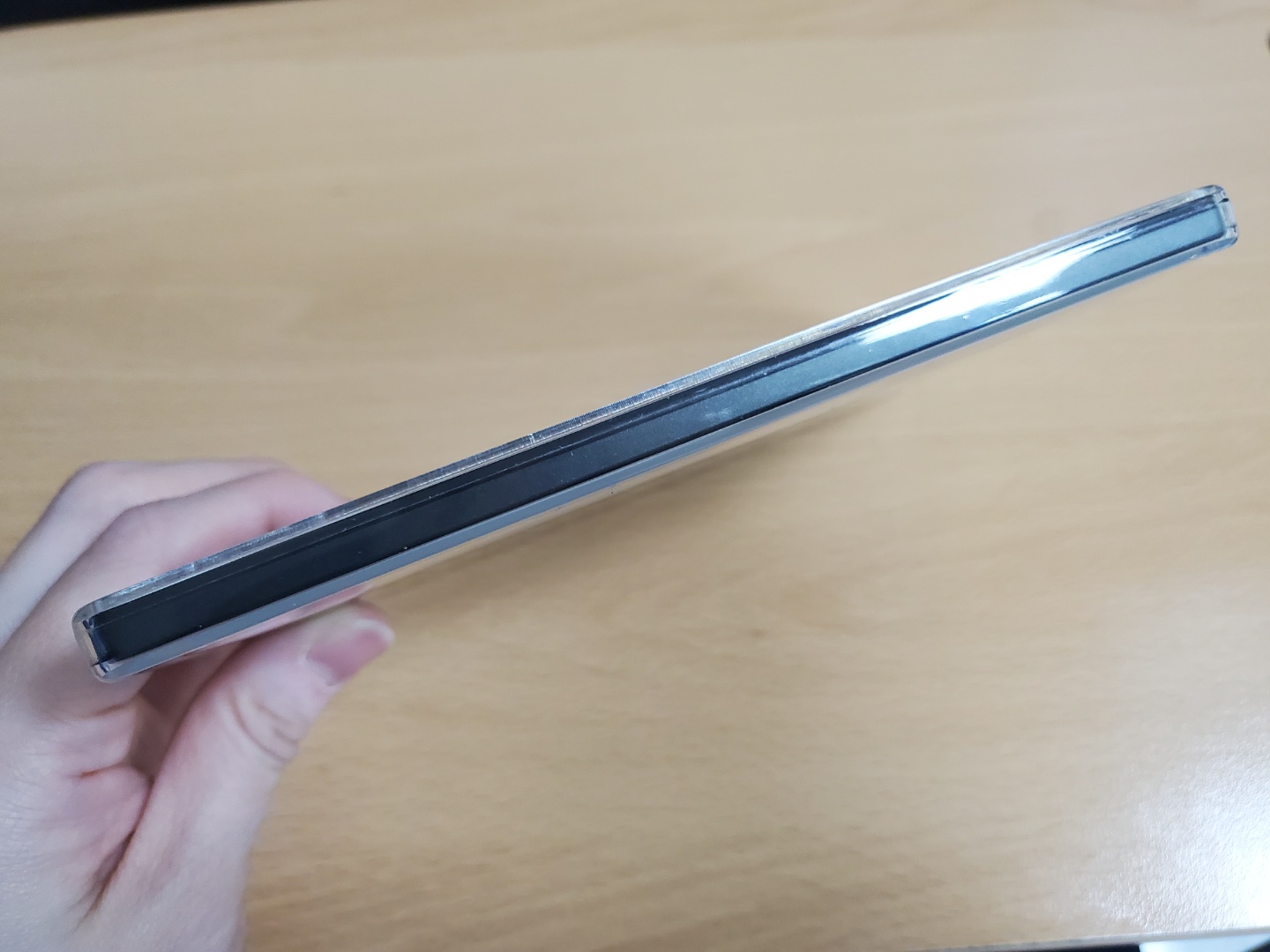 받자마자 '와 6인치가 이렇게 작은 사이즈였었나?'였는데요. A5의 대략 반 정도 되는 크기라 정말 첫눈에 엄청 아담하다는 인상을 받았습니다. 그리고 매우 얇고 예쁩니다. 기기의 모서리 부분도 왠지 아이폰 같은 느낌이 드는데요. 뭔가 차가운 느낌도 들고 손에 잡히는 느낌이 아주 좋습니다. 젤리케이스를 씌워도 그리 두껍지 않은 크기예요. 무게도 150g이라 한 손에 들기에도 무리가 전혀 없습니다. 가지고 다니기에도 불편하지 않은 무게예요.