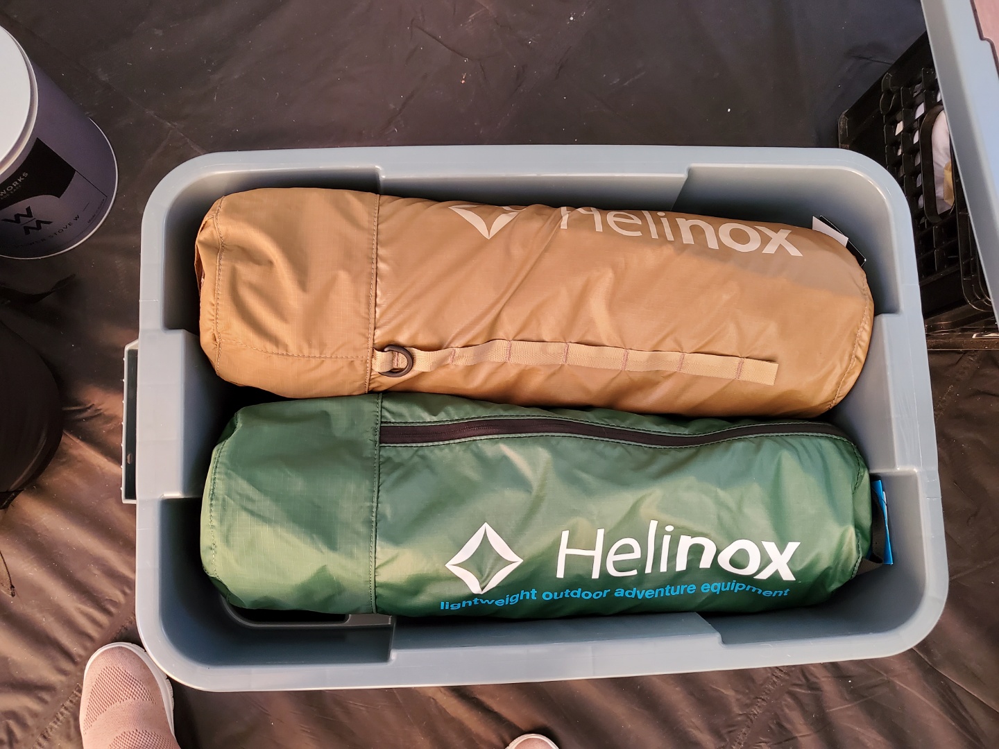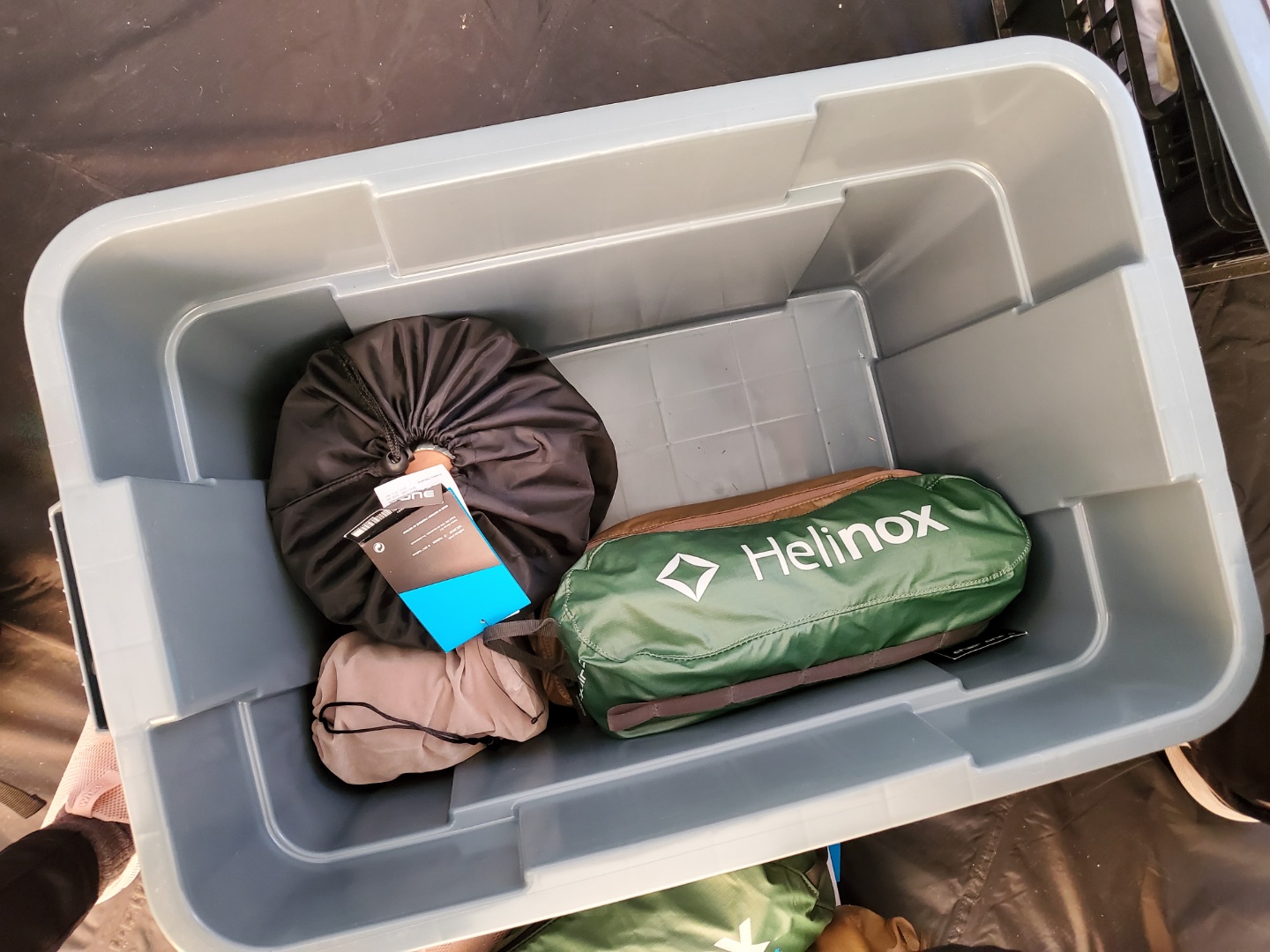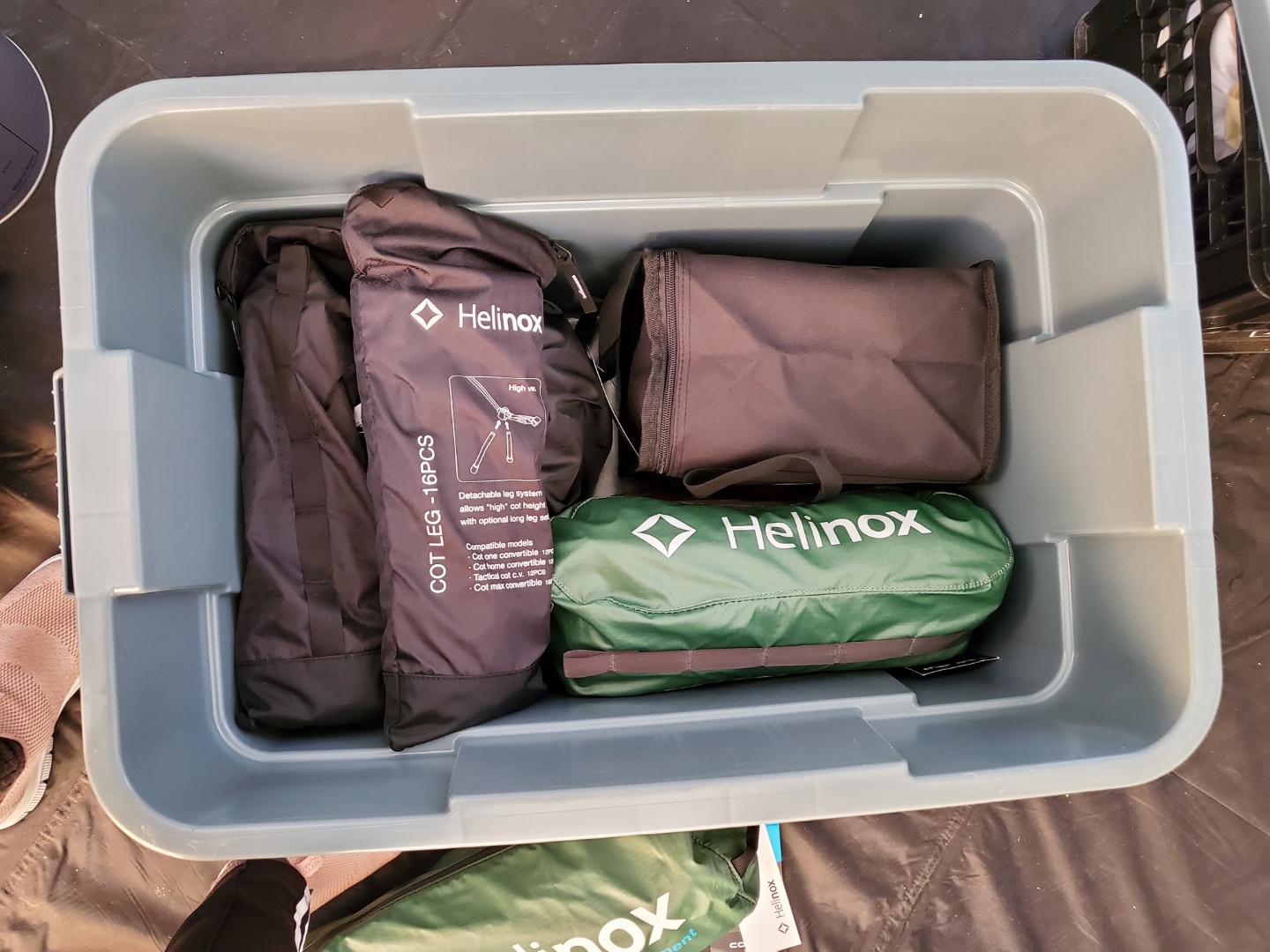 안에 꽤 많은 짐이 들어갑니다. 저희는 텐트 안에 야전침대를 사용하고 있는데요 야전침대 2개, 야전침대용 다리, 헬리녹스 체어원 2개, 미니의자 두 개, 미니히터 등 사진에 보이는 짐들이 이 박스 안에 모두 들어가요. 이 짐들 아니더라도 자잘한 잡동사니들 한 번에 패킹 가능하겠죠? 보니 폴딩 박스 2개 짐 이면 이곳에 충분히 담길 사이즈입니다. 일반 폴딩 박스보다 사이즈도 약간 크고 깊이감도 있기 때문에 여러 규격의 짐을 레고처럼 잘 쌓아 넣으시면 하나로 깔끔하게 짐 정리하실 수 있으세요.