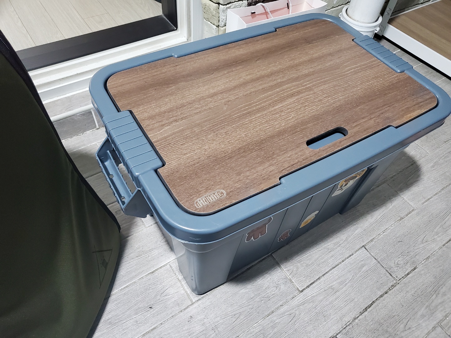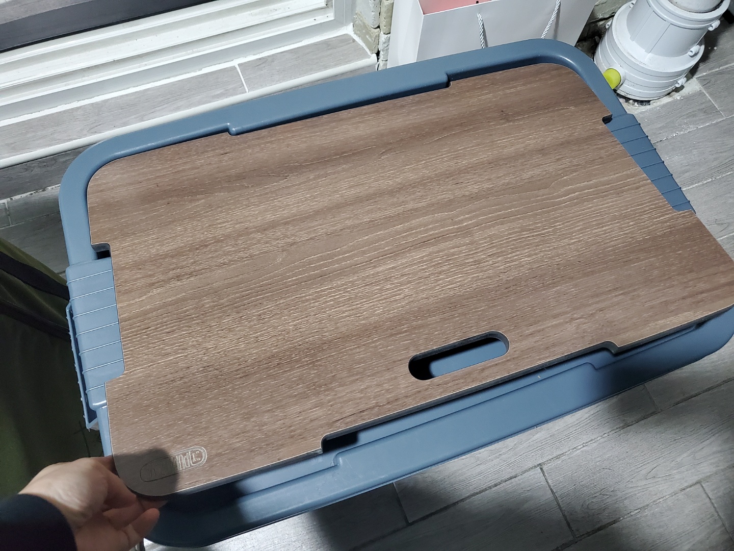 위에 상판은 옵션으로 구매하셔야 하는데요. 저희는 이 박스를 테이블 겸용으로도 사용하고 있는데 이 상판의 기능이 탁월하더라고요. 오염에도 강하고 열에도 강해서 이것저것 막 올려 두고 사용합니다. 반찬 한두 개 놓고 시에라 컵 두 개에 접시 하나 소주잔 2개 너끈히 올라가요. 공간이 클수록 더 많이 놓게 되는 거 아시죠? 저희도 큰 사이즈으 테이블을 사용했었는데요. 이 브로트 박스 크기만으로도 식탁으로 충분히 활용 가능하더라고요. 특히 짐 줄이고 싶으신 분들 미니멀하게 캠핑하고 싶으신 분들께 정말 강력 추천할게요!!!