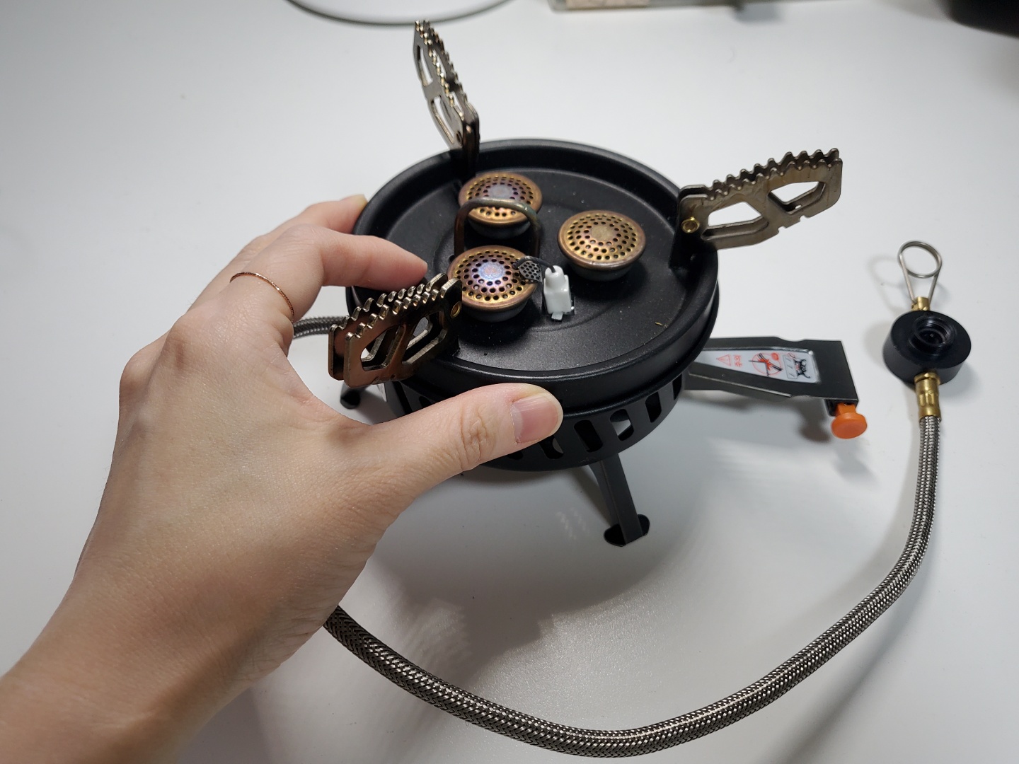 가격 대비 아주 잘 사용하고 있어서 추천해드리는 제품이에요. 사실 처음에 알게 된 제품은 고가의 다른 제품이었는데요. 가격이 너무 비싸서 접근을 못하겠더라고요. 10만 원 넘지 않는 선에서 사이즈 작고 안정감 있게 사용할 제품을 찾다가 이 스토브를 발견하게 됐어요. 작지만 아주 강한 아이예요~