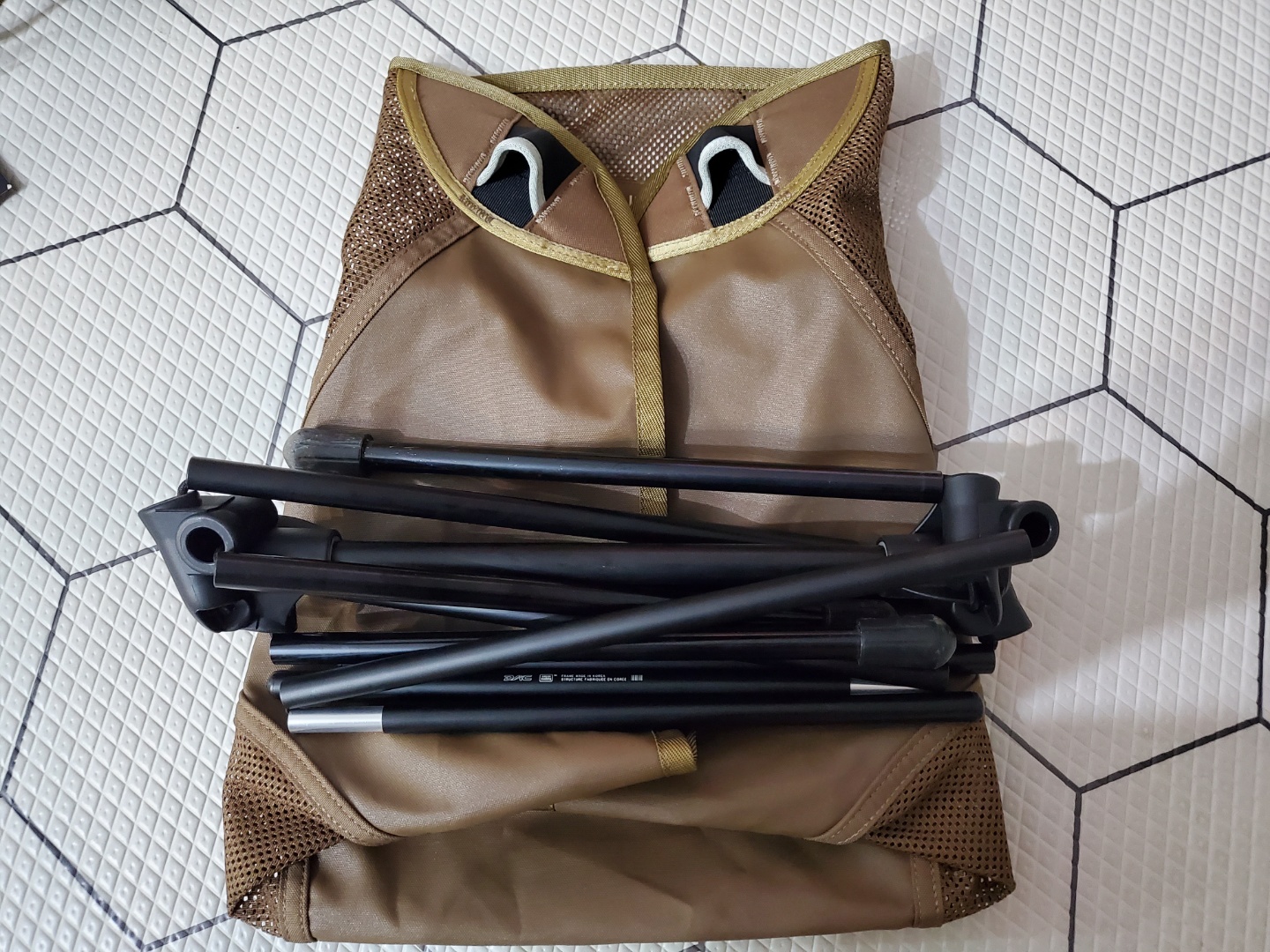 사용하면서 좋은 점을 계속 한 가지씩 더 느끼고 있는데요. 일단 콤팩트 한 점은 정말 따라잡을 수가 없는 것 같아요. 정말 어쩜 이렇게 작아지는지 릴랙스 체어는 딱 한번 우산처럼 접어서 케이스에 넣는 거라 편하긴 했어도 덩치가 어마어마했거든요. 덩치만큼 무게도 많이 나가서 체어 가방에서 체어 꺼낼 때마다 낑낑거렸는데요. 이 부분만 해도 정말 완벽해요. 체어 폴을 다 빼서 접으면 사이즈가 엄청 작아지는데요. 접는 방법도 한두 번만 하면 늘 똑같이 아주 쉽게 처음 모양데로 패킹할 수 있느다는 데에 큰 점수를 주고 싶더라고요. 저는 두 개다 부르트 박스 안에 다 때려 넣고 다닙니다. 짐이 줄은 만큼 만족도가 엄청 올라갔습니다.