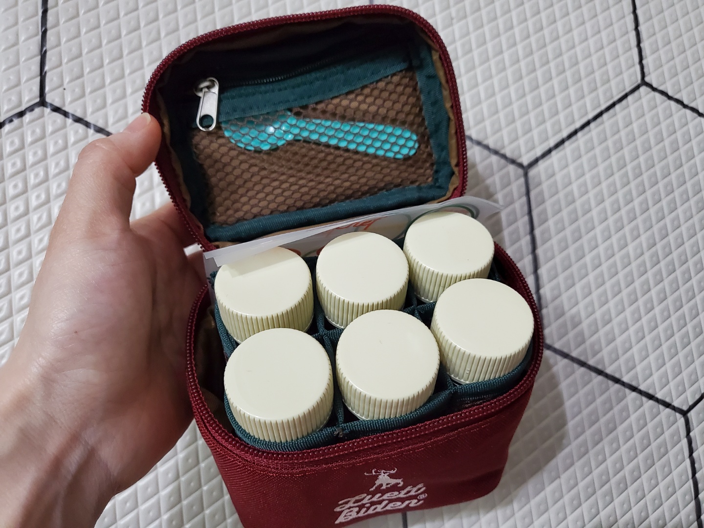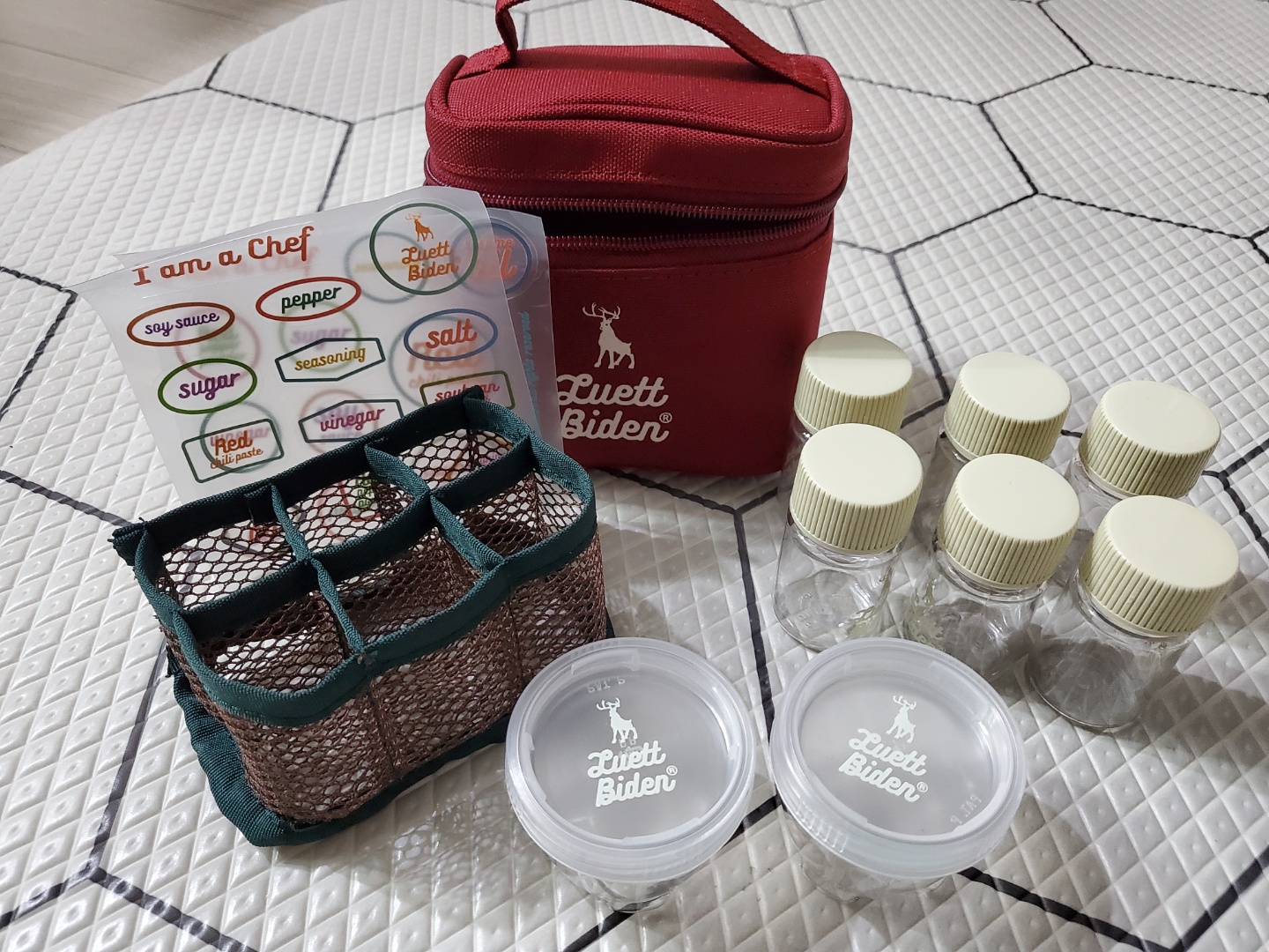 사진 여자 손으로 한 손에 들어오지만 들어 있을 구성 다 들어 있고요. 용량도 딱이고 솔로 캠핑할 때 부부 캠핑할 때 가족 캠핑할 때도 이 정도 양념이면 거뜬히 사용할 수 있을 거 같아요. 캠핑은 장비 빨 이잖아요. 다음번 캠핑이 기대되네요~