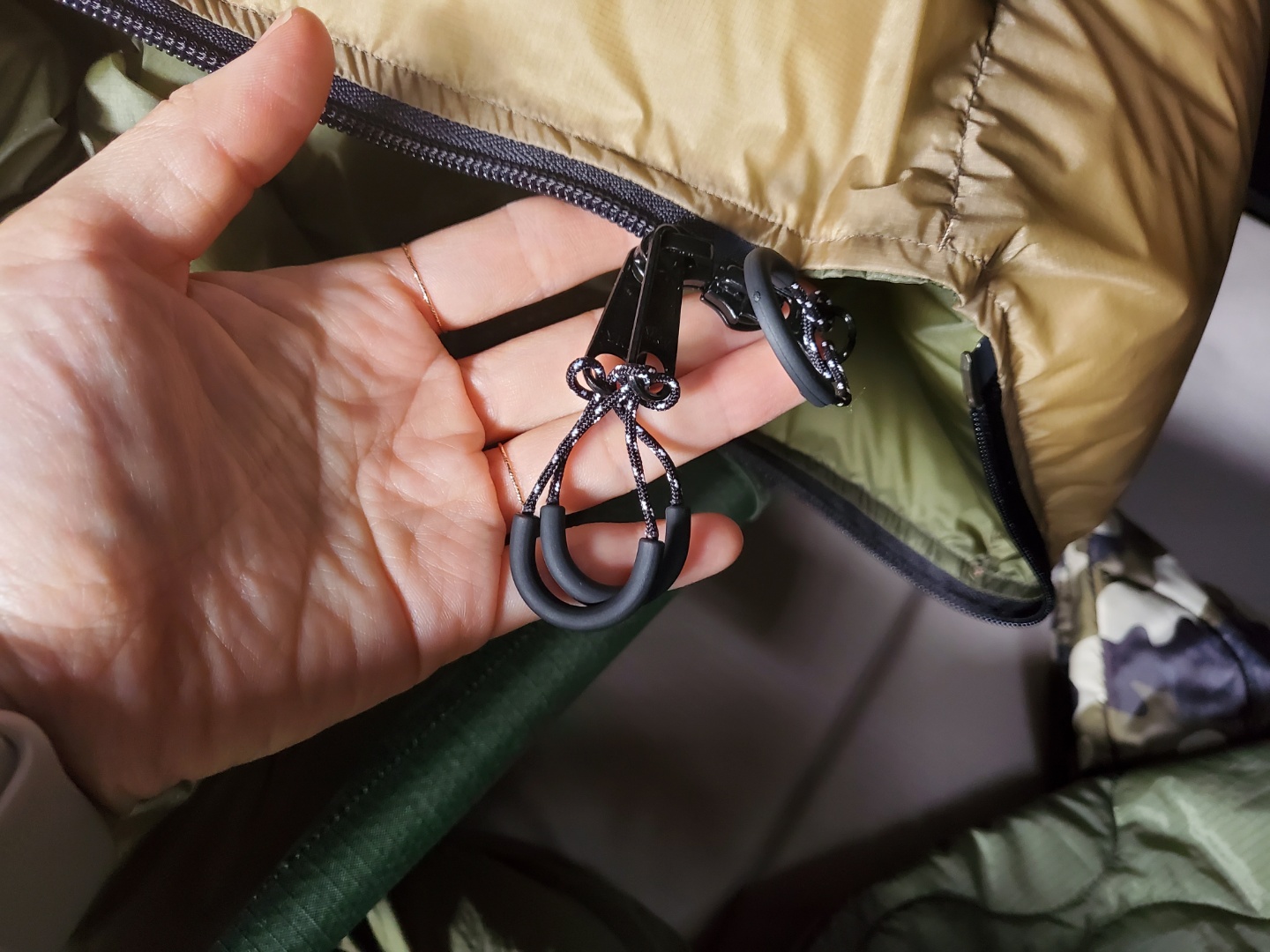 그리고 윈터슬립과 다르게 썸머라이트는 사격형 모양의 디자인으로 나왔어요. 겨울에는 쏙 들어가서 머리까지 따뜻하게 해주는 기능을 하지만, 여름에는 이 기능이 필요 없거든요. 그래서 사각형으로 나왔으면 좋겠다. 좌우편 하게 사용할 수 있게 하고 생각했는데 사각형으로 디자인이 빠져서 좋았습니다. 그리고 지퍼를 다 열면 이불처럼 덮고 자는 것도 가능해요. 이번에 하계 캠핑할 때에는 하나만 펼쳐서 같이 덮고 잤네요. 둘이서 하나로 덮고 자기에 충분한 사이즈랍니다.