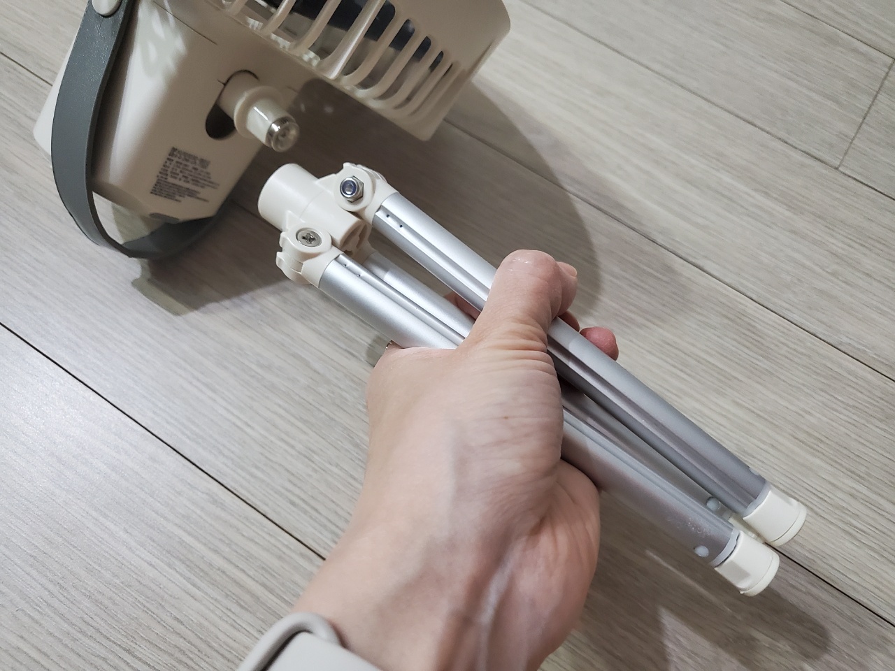 이 써큘레이터는 정말 장점이 많은 선풍기예요. 일단 제일 먼저 헤드와 다리가 분리가 됩니다. 다리는 높낮이가 쉽게 조절이 가능하고요. 가장 낮게는 30cm에서 높게는 45cm까지 높이 조절이 가능해요. 캠핑 가서 앉아 있으면 지면에 놓아도 가장 높은 높이로 조절해두면 얼굴까지 바람이 직방으로 오니까 너무 편하더라고요.