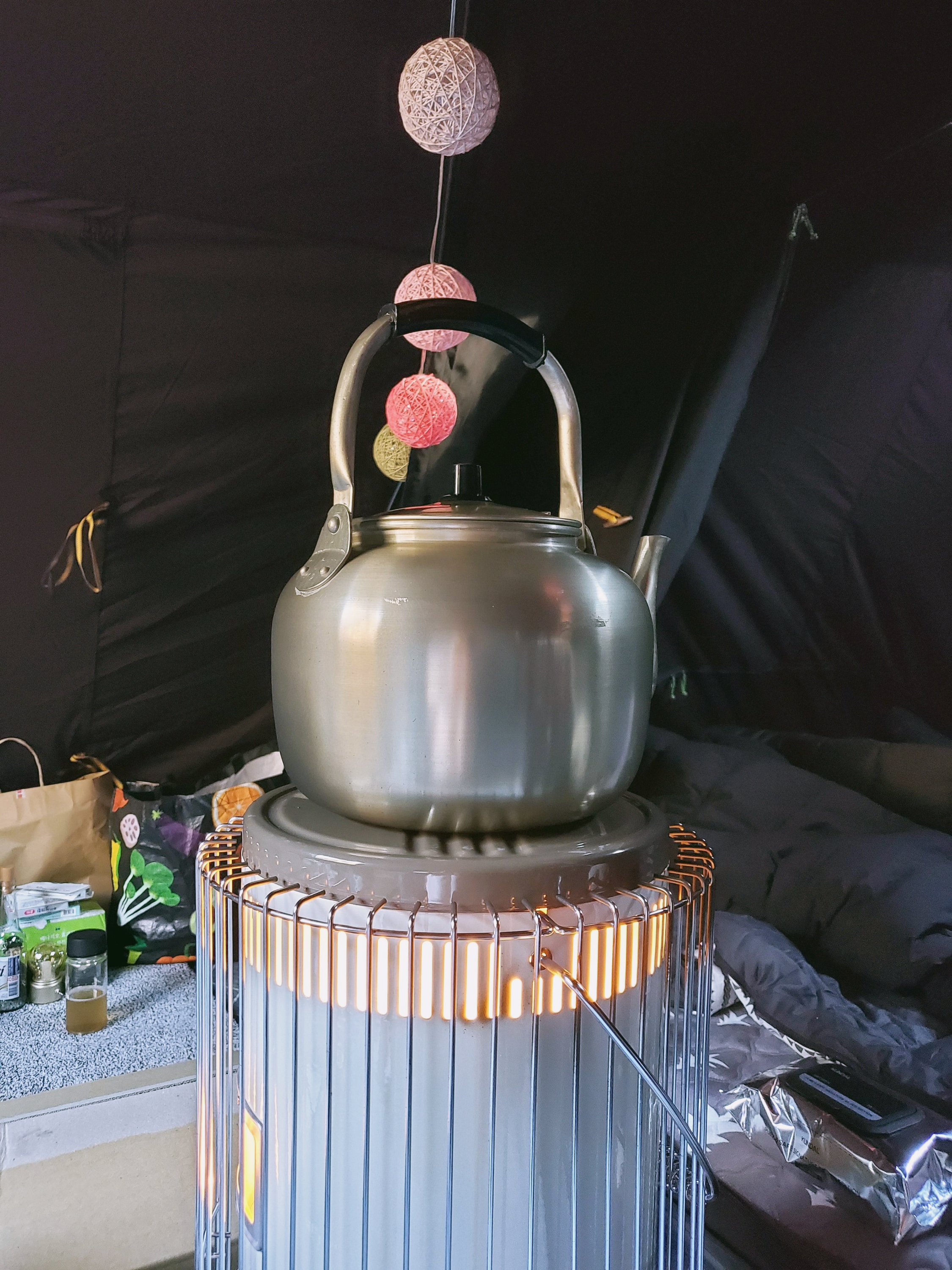 감성은 뭐 말할 필요가 없습니다. 난로 위에 고구마나 감자를 올려놓거나 주전자를 올려놓고 사용하기에도 감성 있고 아이보리 컬러가 어느 텐트에나 잘 어울리죠. 등유난로는 그 자체로도 감성 템입니다.